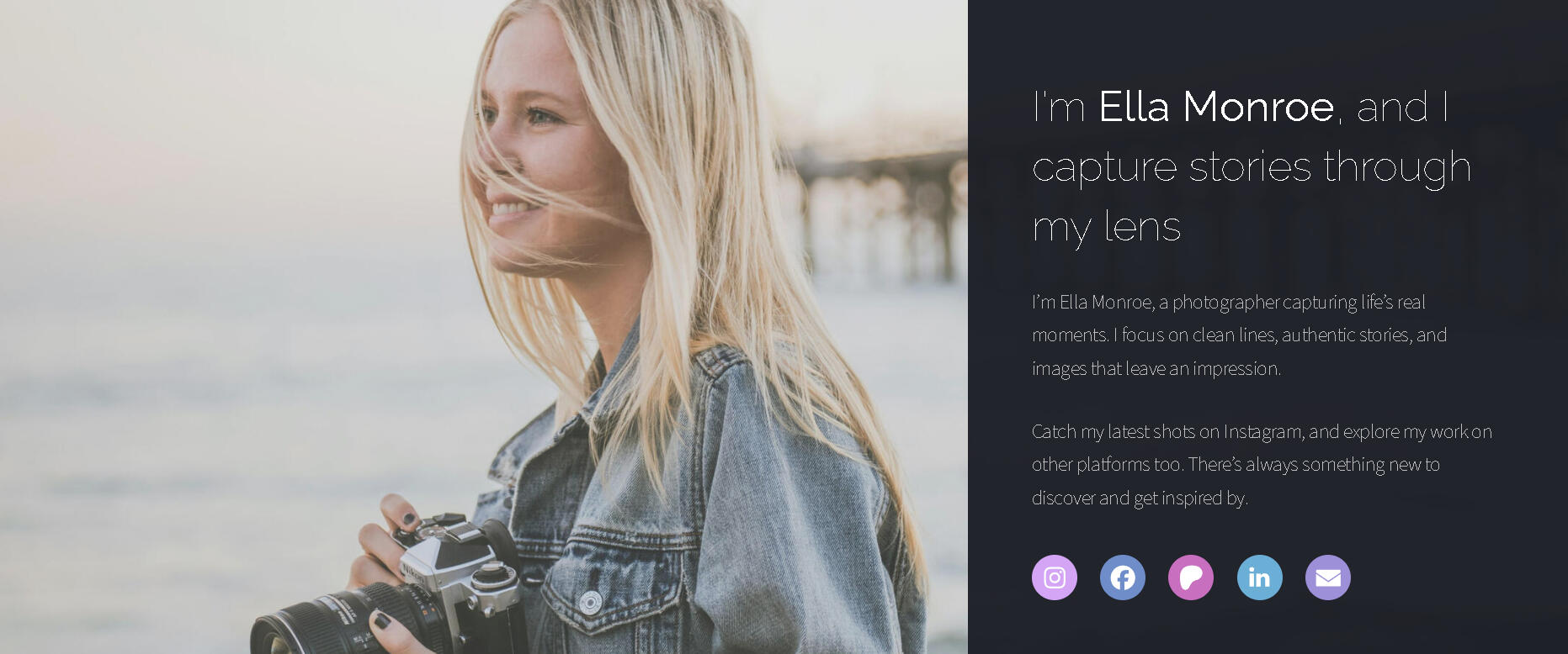 A clean landing page designed to showcase a freelancer’s work, social links, and personal brand.