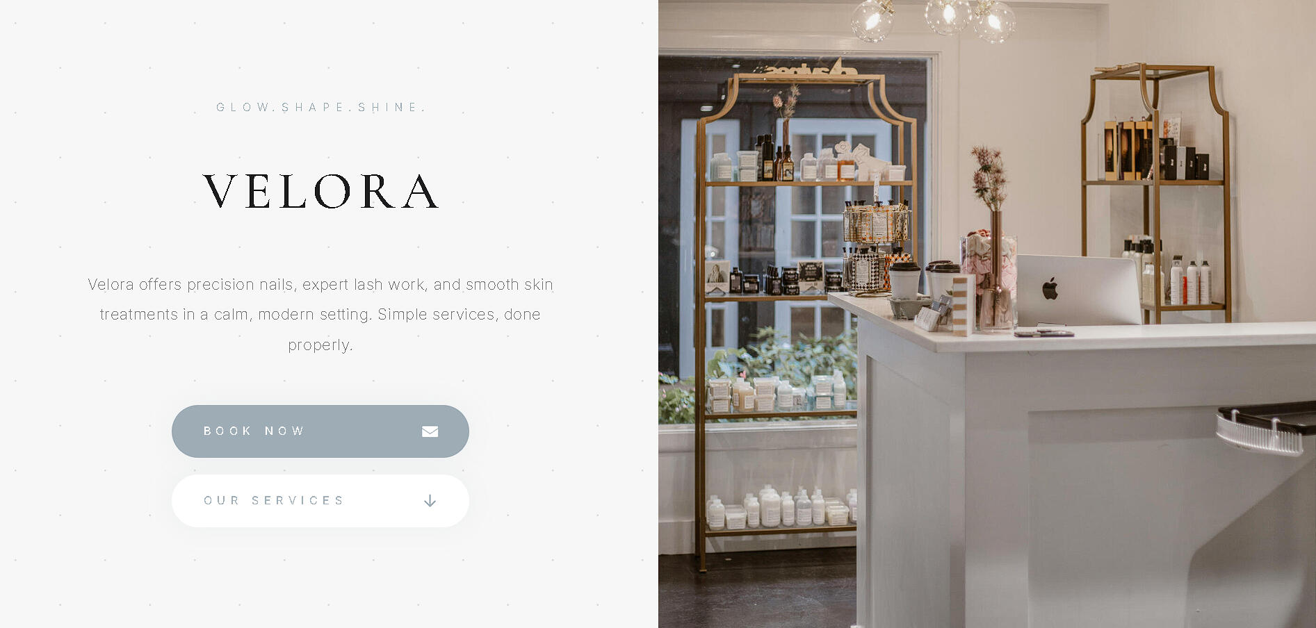 Modern beauty studio website featuring luxury services, smooth navigation, and a clean design built to guide clients from browsing to booking.